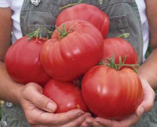 Description: This large, potato-leaved dark pink tomato is fast becoming a favorite of gardeners across the country. The large, 1 to 2 pound pink-red beefsteak fruits have luscious, full tomato flavor that features a good balance of acidity and sweetness. Vigorous vines are very productive, which is special for a potato-leaved plant. Indeterminate. 80 days.