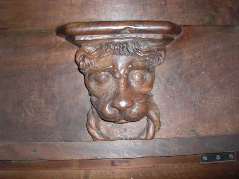 Some artwork on the pews