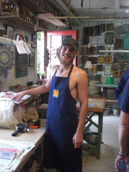 Ben showing Ben the kiln and explaining the process