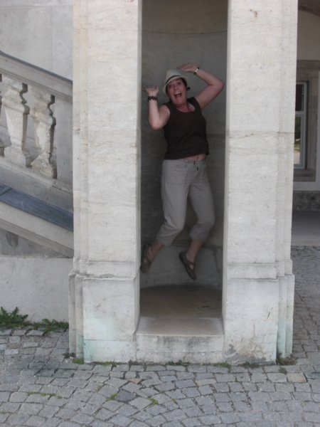 Monica jumping in a shaft